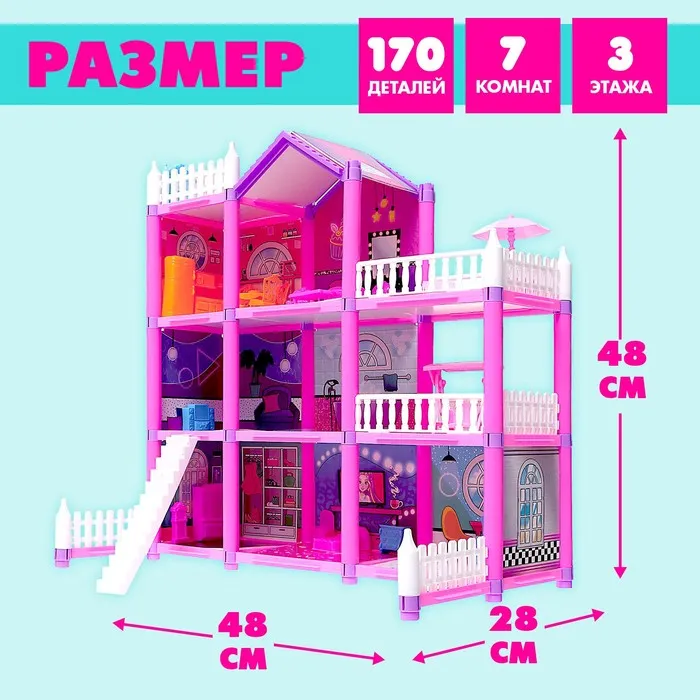 Что может быть лучше кукольного домика для маленькой принцессы? Только набор с 3-этажным коттеджем, мебелью и гирляндой! С таким набором малышка обустроит уютный уголок и придумает множество увлекательных сюжетно-ролевых игр. Он станет отличным подарком на любой праздник!