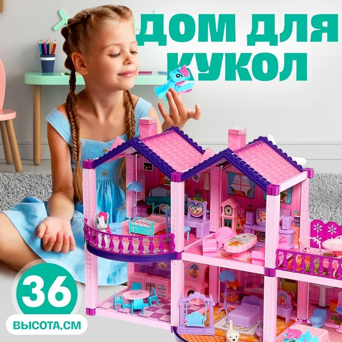 Малышка придёт в восторг от яркого домика. Стильная мебель, модный интерьер — красочные разнообразные предметы с первых секунд завладеют вниманием девочки.