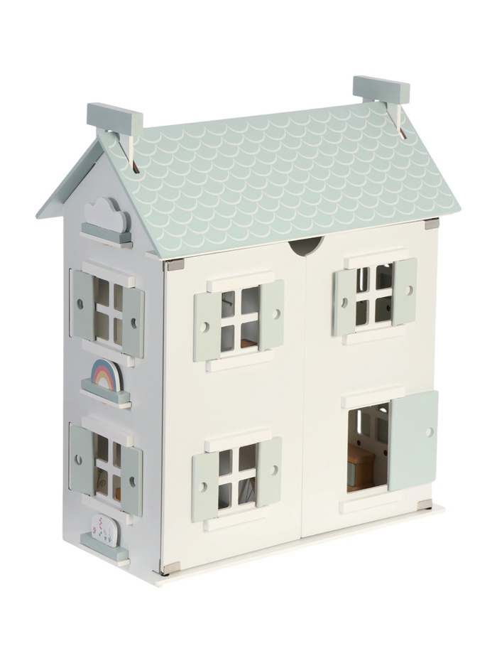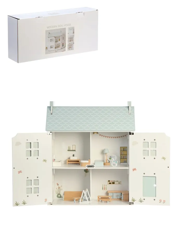 Кукольный домик с дверцами — это уютный мир для творческих игр, который станет любимым уголком для маленькой хозяйки. Этот деревянный домик включает всё необходимое для создания собственного пространства: гостиную, спальню и кухню. Девочка сможет проявить фантазию, обставляя интерьер и создавая уникальные истории. После игры домик легко закрывается дверцами, сохраняя аккуратный вид.