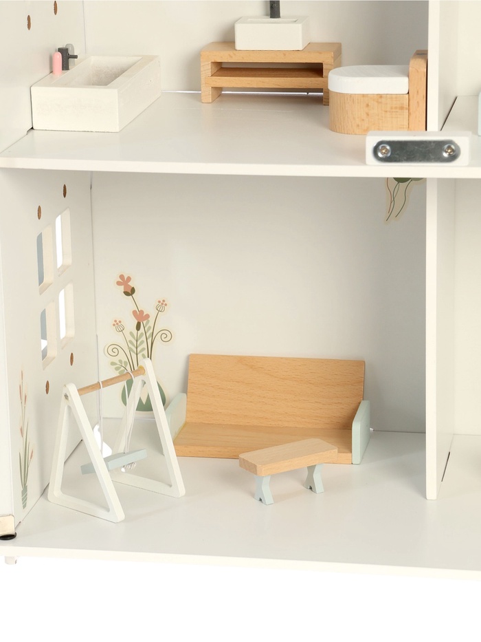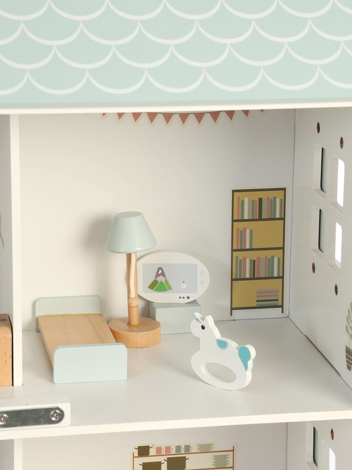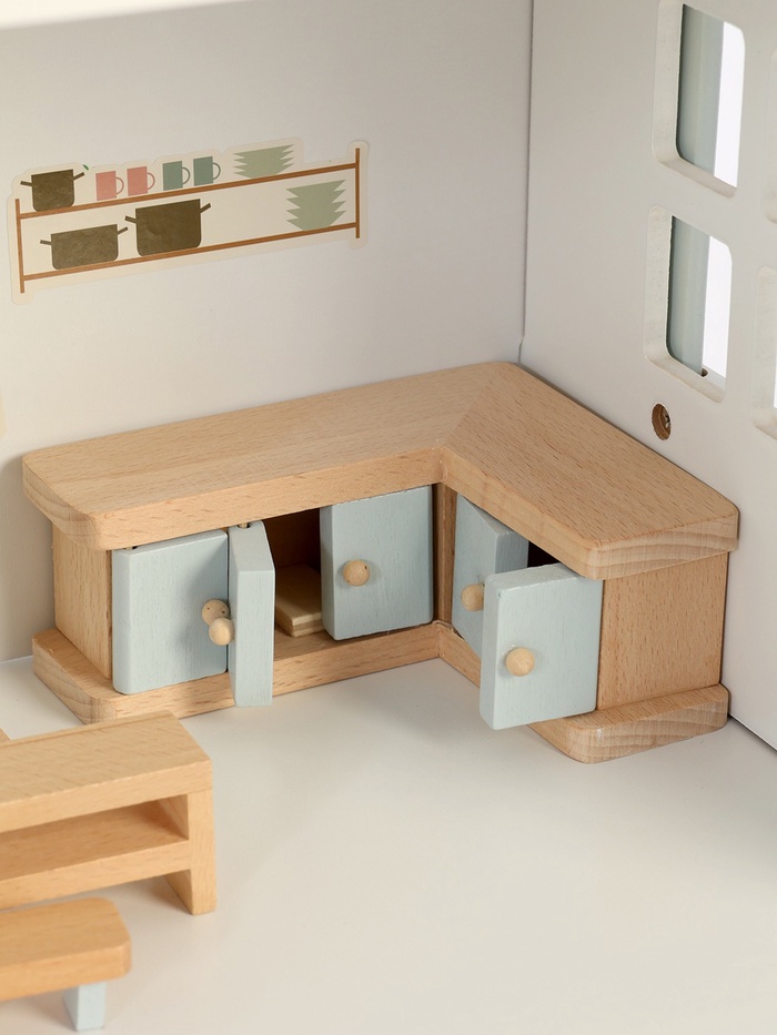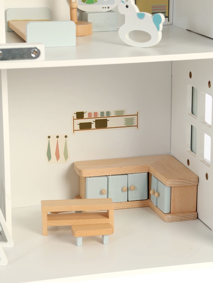 Кукольный домик помогает развивать важные навыки: воображение, творческое мышление и социальные навыки. Работа с мебелью и аксессуарами тренирует мелкую моторику и координацию движений. Игра в домик способствует развитию эмоционального интеллекта, так как ребёнок учится взаимодействовать с окружающими через ролевые игры. Благодаря натуральному дереву и безопасным материалам, игрушка надёжна и долговечна.