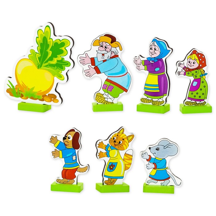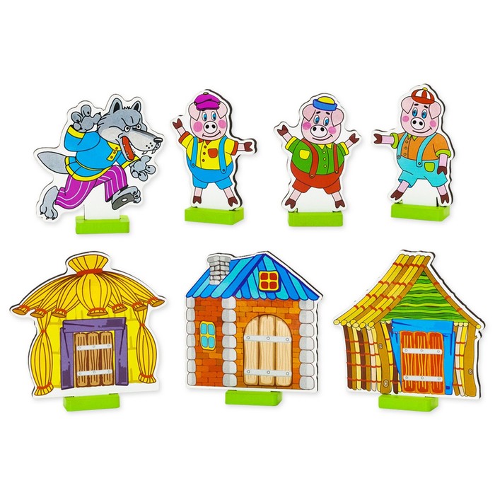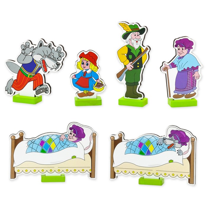 Декорации и 20 фигурок-актеров трех сказок: «Репка», «Красная шапочка», «Три поросенка».