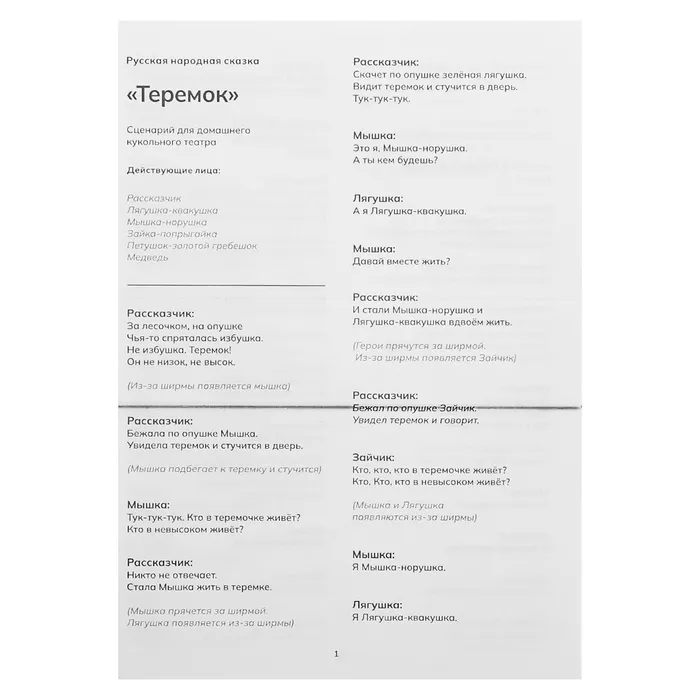 Кукольный театр «Сказка: Теремок» — это замечательная возможность для детей и взрослых окунуться в мир театра и сказок. Набор включает текстильные куклы, которые помогут оживить классическую сказку «Теремок».