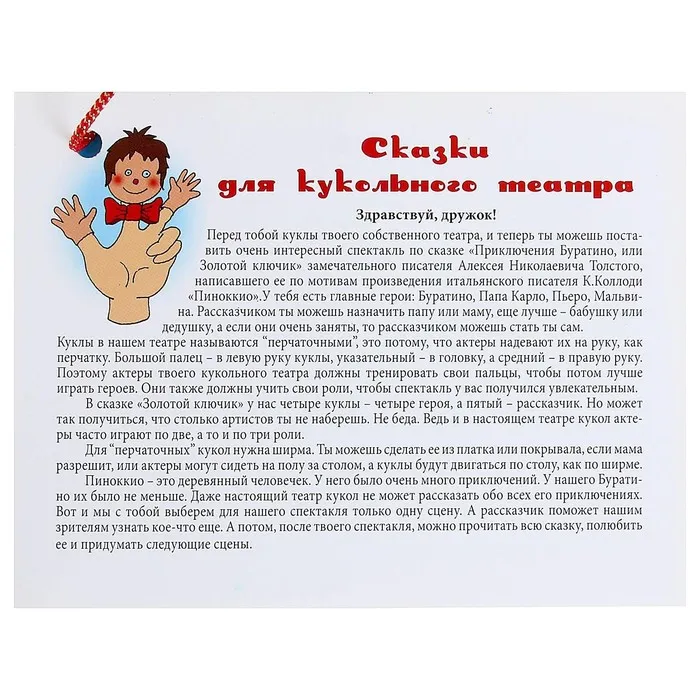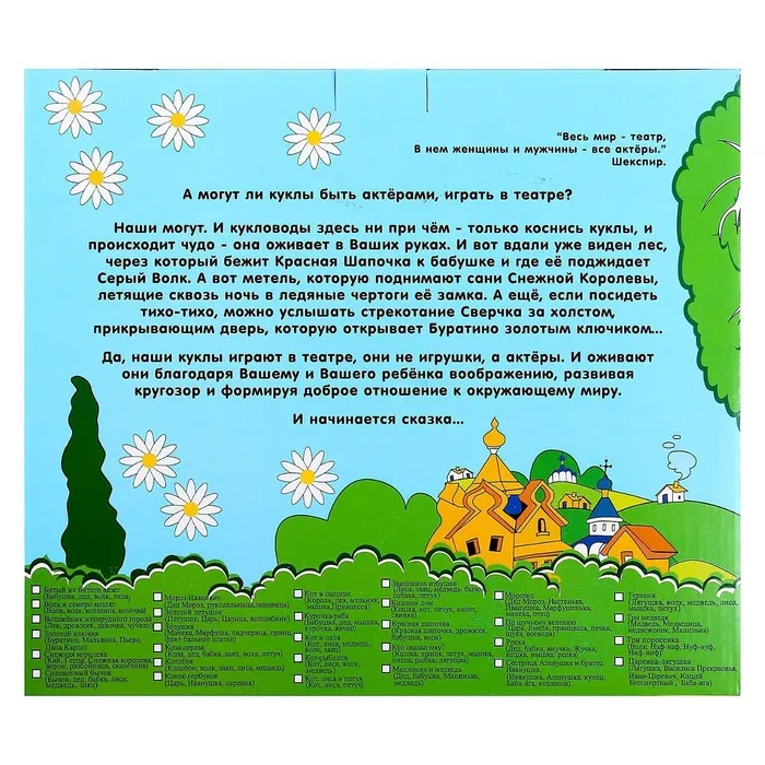 В набор входит детально прописанный сценарий и куклы-персонажи: