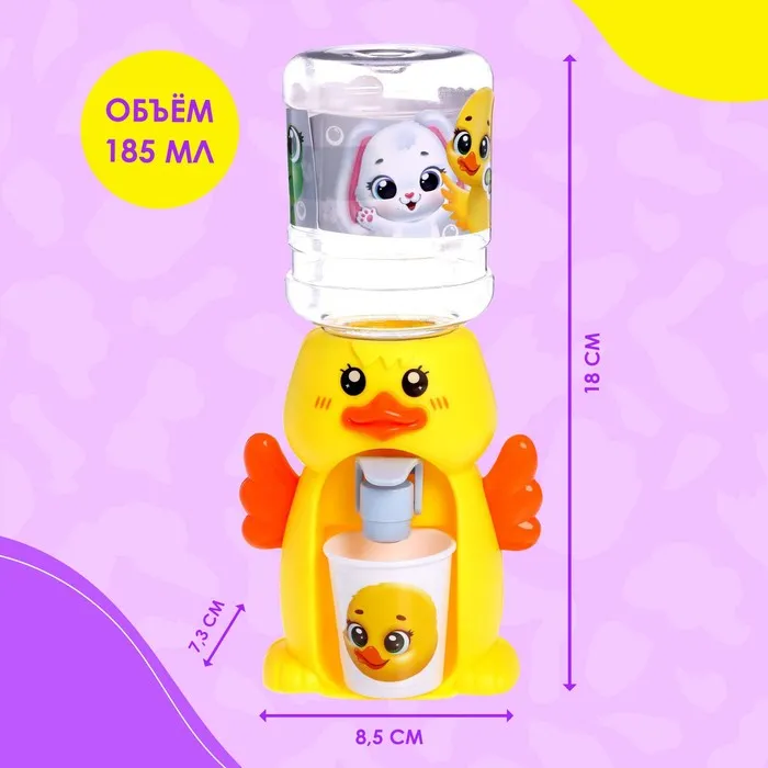 Компактный кулер для воды с небольшим резервуаром дополнит интерьер кухни маленькой хозяюшки и сделает игровые сюжеты более реалистичными.