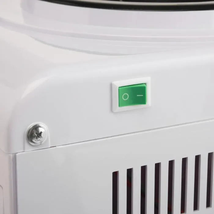 С верхней загрузкой бутылей и мощностью нагрева 700 Вт, этот кулер быстро подогреет воду до 95°C, обеспечивая до 7 литров горячей воды в час. Для охлаждения используется элемент Пельтье, который эффективно снижает температуру воды до 12°C, обеспечивая до 1 литра охлажденной воды в час.