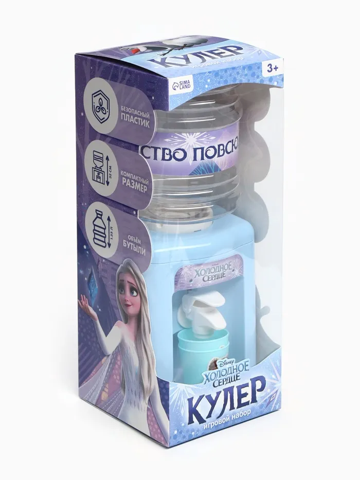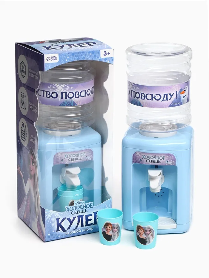 Компактный кулер для воды «Холодное сердце» дополнит интерьер игрушечной кухни маленькой хозяюшки и сделает игровые сюжеты более реалистичными.