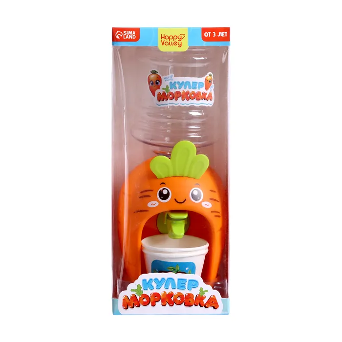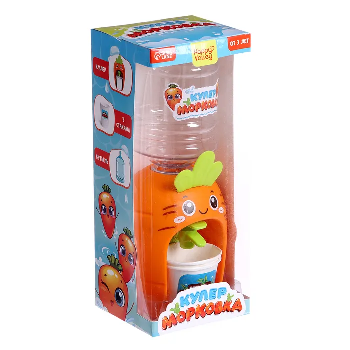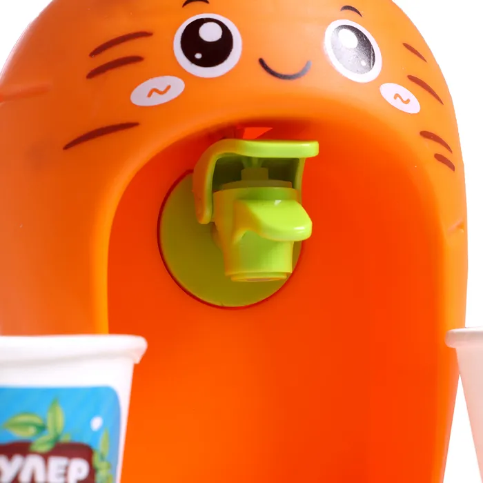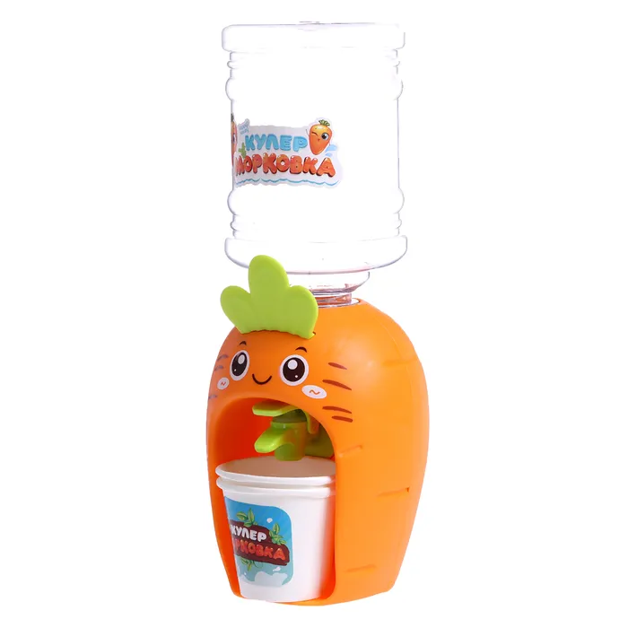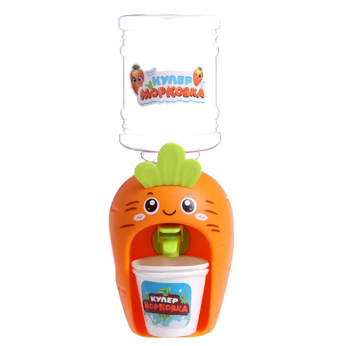 Компактный кулер для воды «Морковка» с небольшим резервуаром дополнит интерьер кухни маленькой хозяйки и сделает игровые сюжеты более реалистичными.