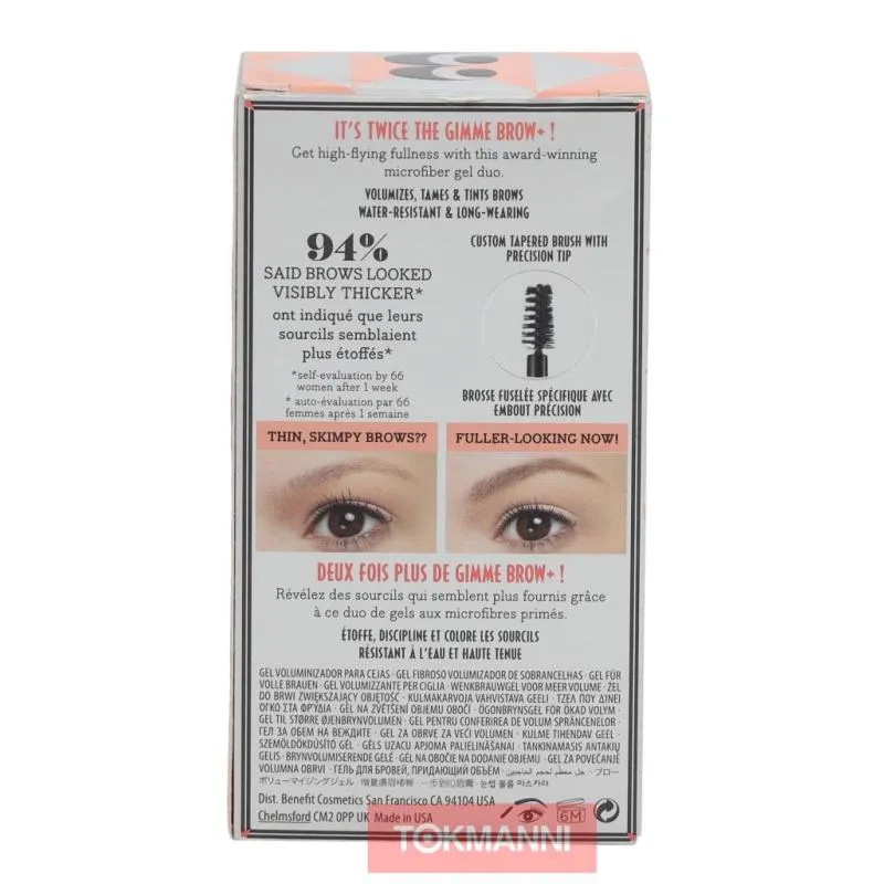 Gimme Brow+ – это гель с микрофибрами, который придает бровям густоту и естественный вид. Его формула легко наносится и равномерно распределяется, обеспечивая стойкость в течение всего дня.