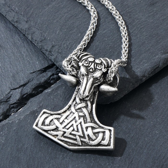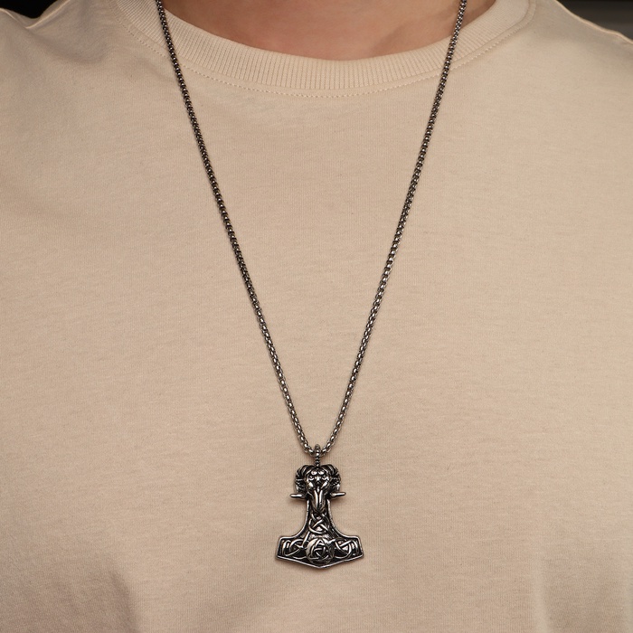 Кулон-амулет «Мьёльнир» молот тора, цвет чернёное серебро, 70 см — Характеристики