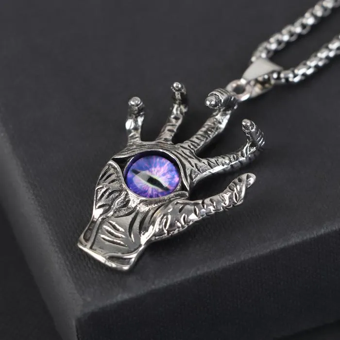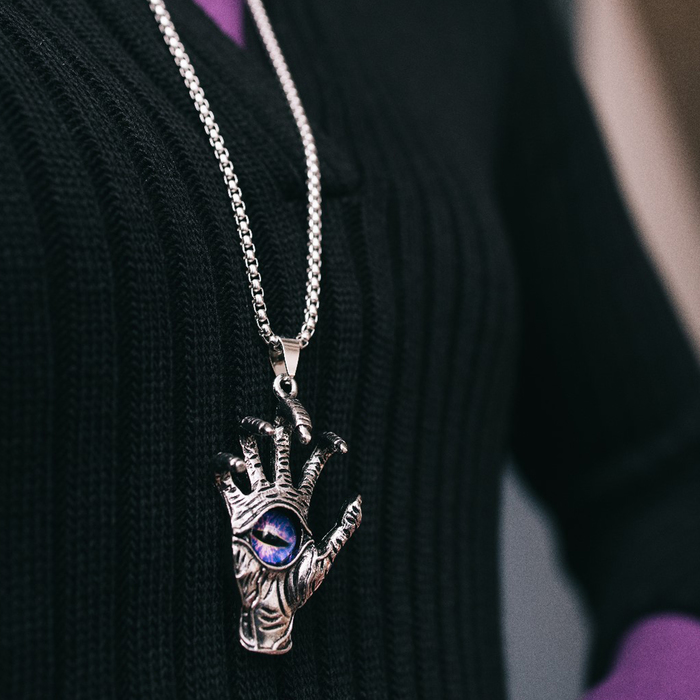 Кулон амулет на цепочке «Око в ладони», фиолетовый в чернёном серебре, 70 см — Характеристики