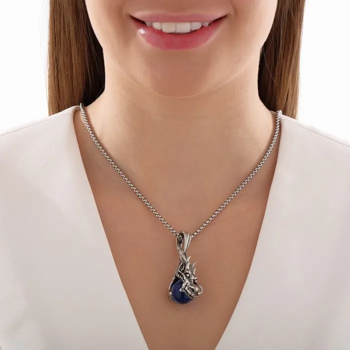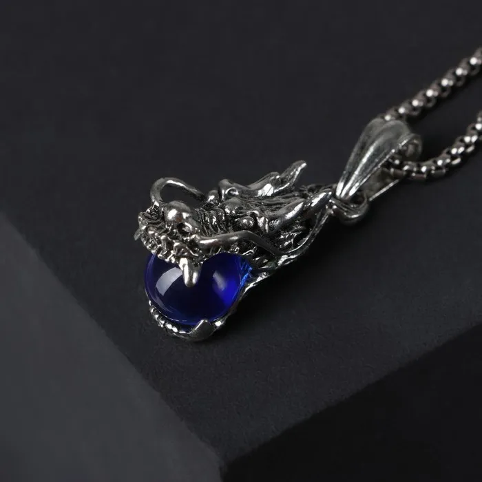 Кулон-амулет «Помпеи» дракон, цвет синий в чернёном серебре, 70 см — Характеристики