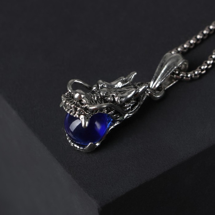 Кулон-амулет «Помпеи» дракон, цвет синий в чернёном серебре, 70 см — Характеристики