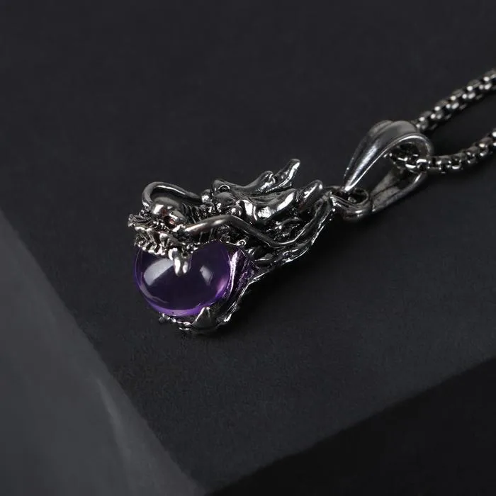 Кулон-амулет «Помпеи» дракон, цвет сиреневый в чернёном серебре, 70 см
