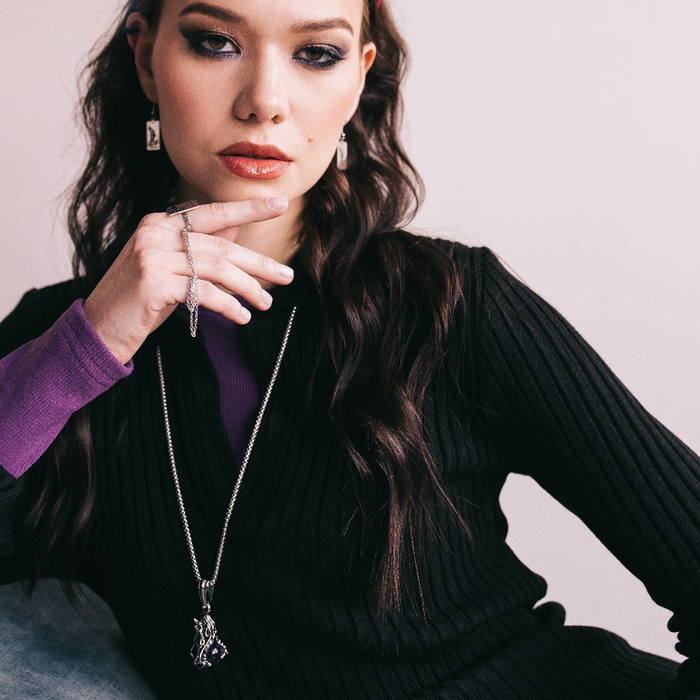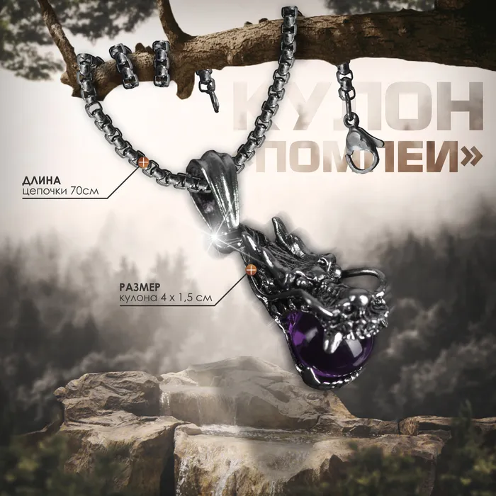 Кулон-амулет «Помпеи» дракон, цвет сиреневый в чернёном серебре, 70 см — Характеристики