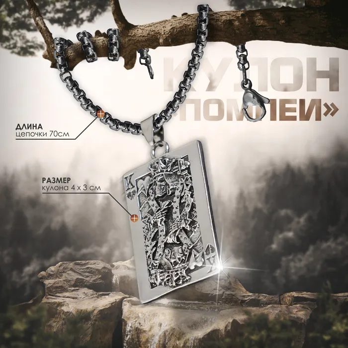 Кулон-амулет «Помпеи» карта, цвет чернёное серебро, 70 см — Характеристики