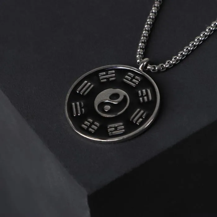 Кулон-амулет «Помпеи» круг инь-ян, цвет чёрный в чернёном серебре, 70 см