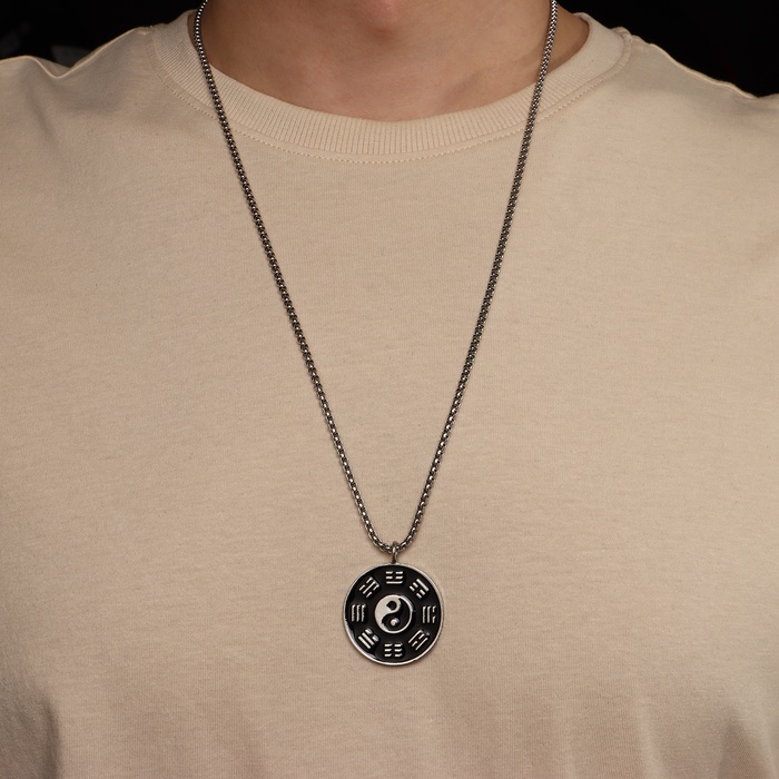 Кулон-амулет «Помпеи» круг инь-ян, цвет чёрный в чернёном серебре, 70 см — Характеристики