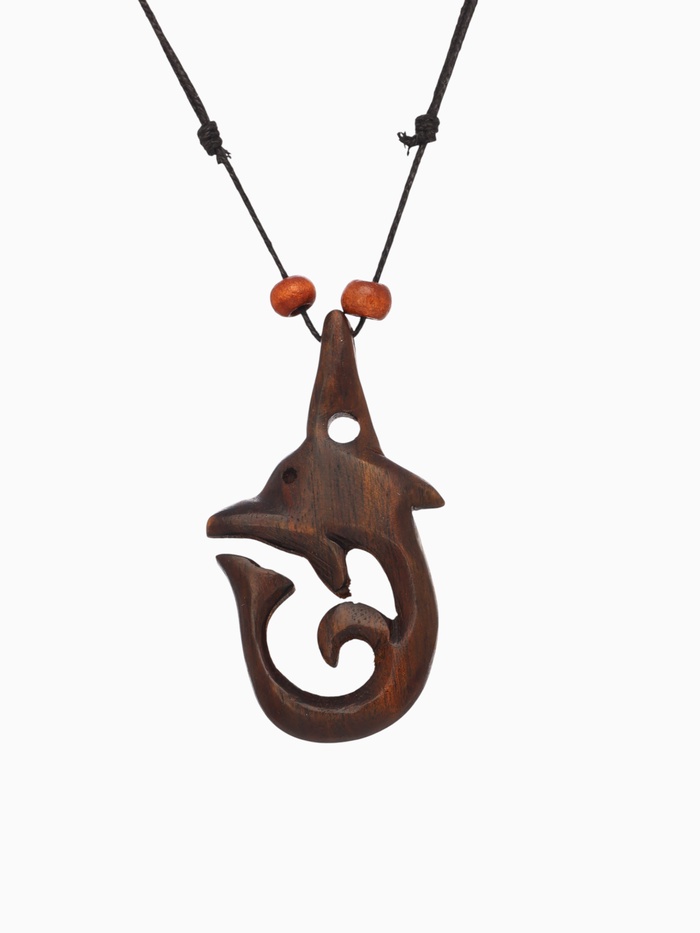 Женский и детский кулон в форме дельфина воплотил в себе плавность линий и элегантность морских глубин. Исполненное из натурального дерева украшение стало гармоничным союзом искусства и природы. Мягко-коричневые оттенки древесины сочетаются с чёрной фурнитурой, придавая изделию особого шарма и привлекательности.