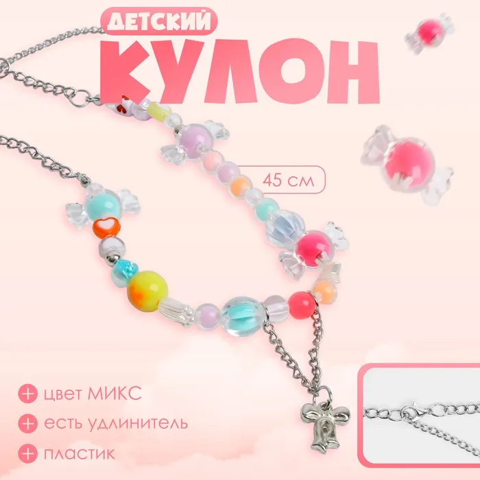 Кулон детский «Выбражулька» бантики-конфетки, цвет МИКС в серебре — Характеристики