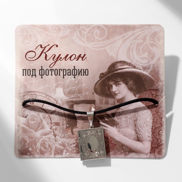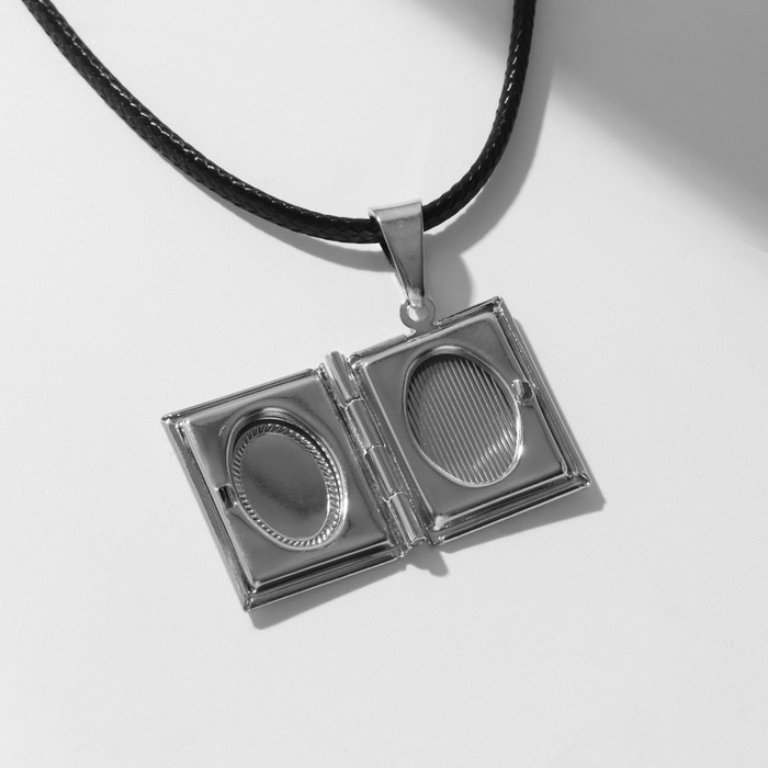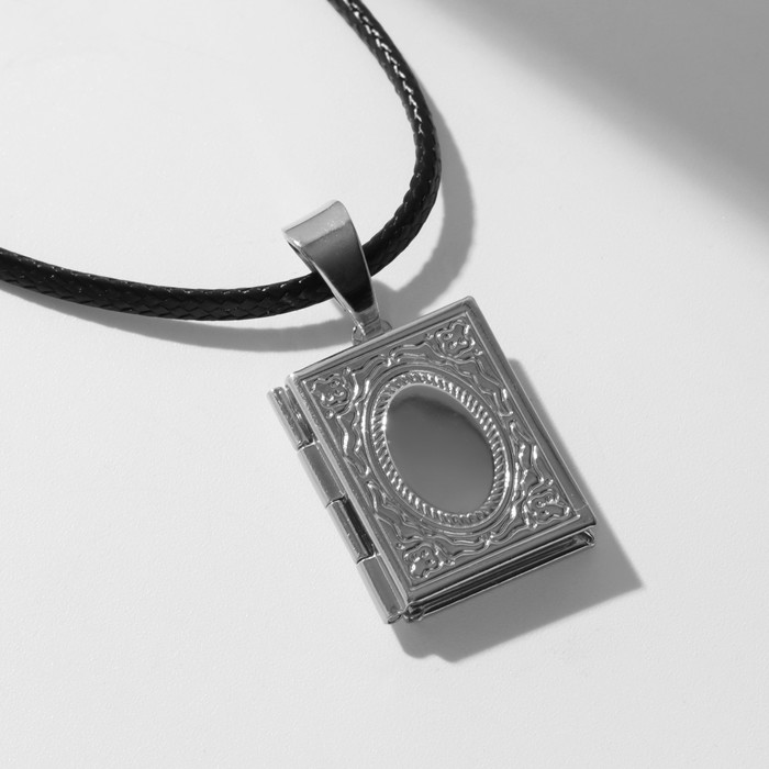 Кулон для фото на шнурке «Книга», цвет серебро на чёрном шнурке, 45 см — Характеристики