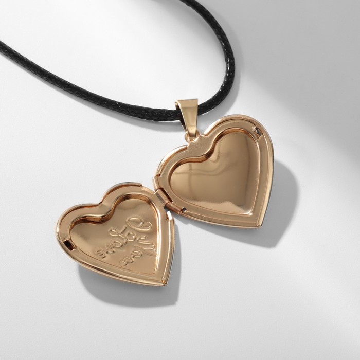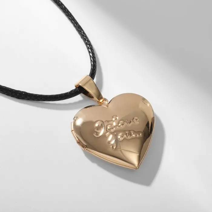 Кулон для фото на шнурке «Сердце» с надписью Love you, цвет золото на чёрном шнурке, 43 см — Характеристики