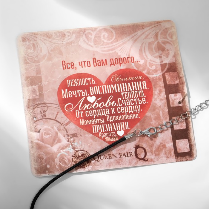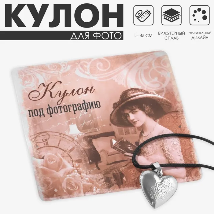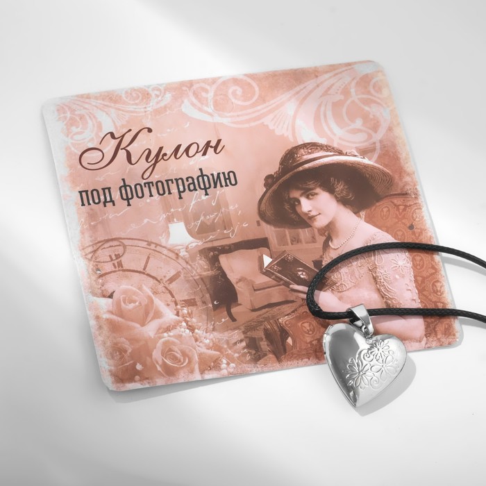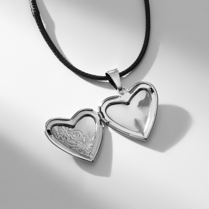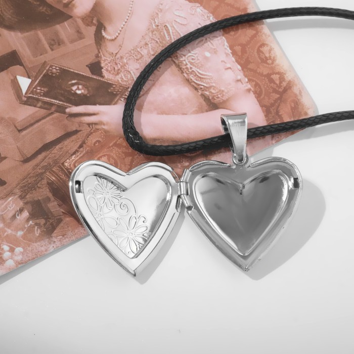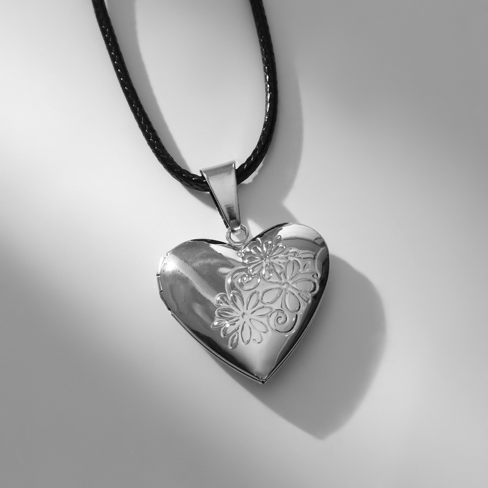 Кулон для фото на шнурке «Сердце» с цветами, цвет чернёное серебро на чёрном шнурке, 45 с, м — Характеристики