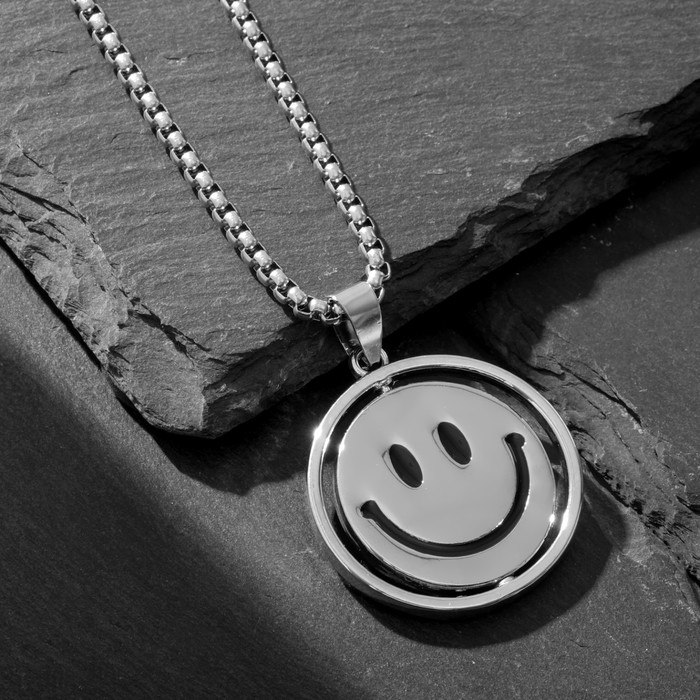 Кулон «Эмодзи» улыбка, цвет чёрный в серебре, 70 см — Характеристики