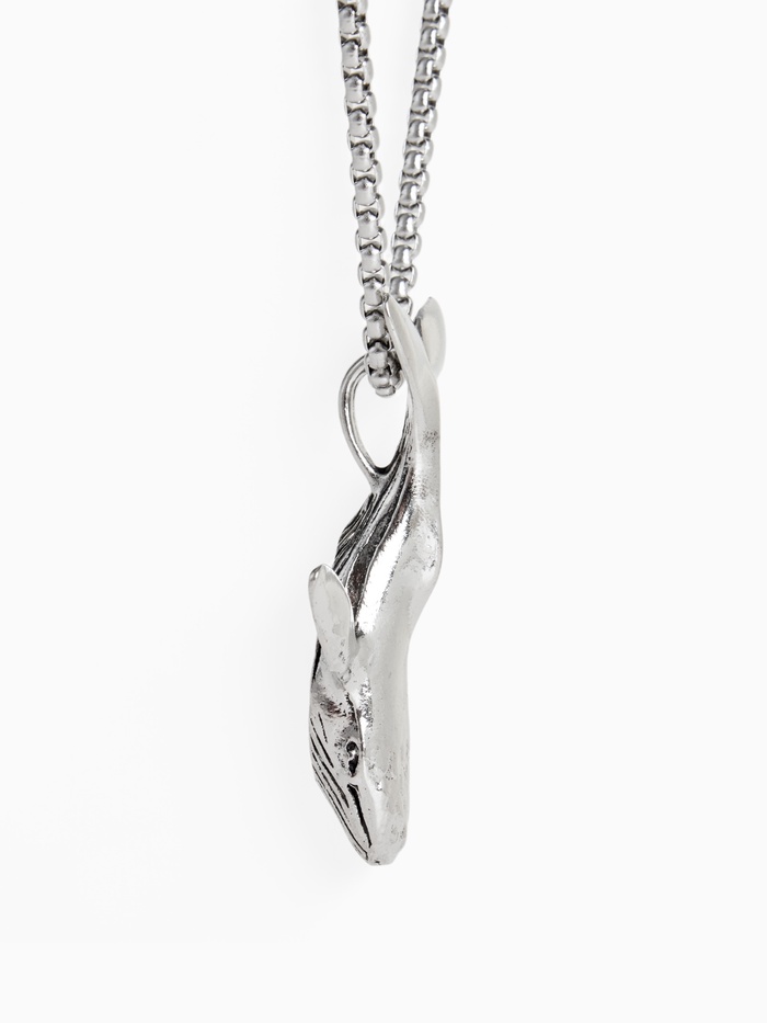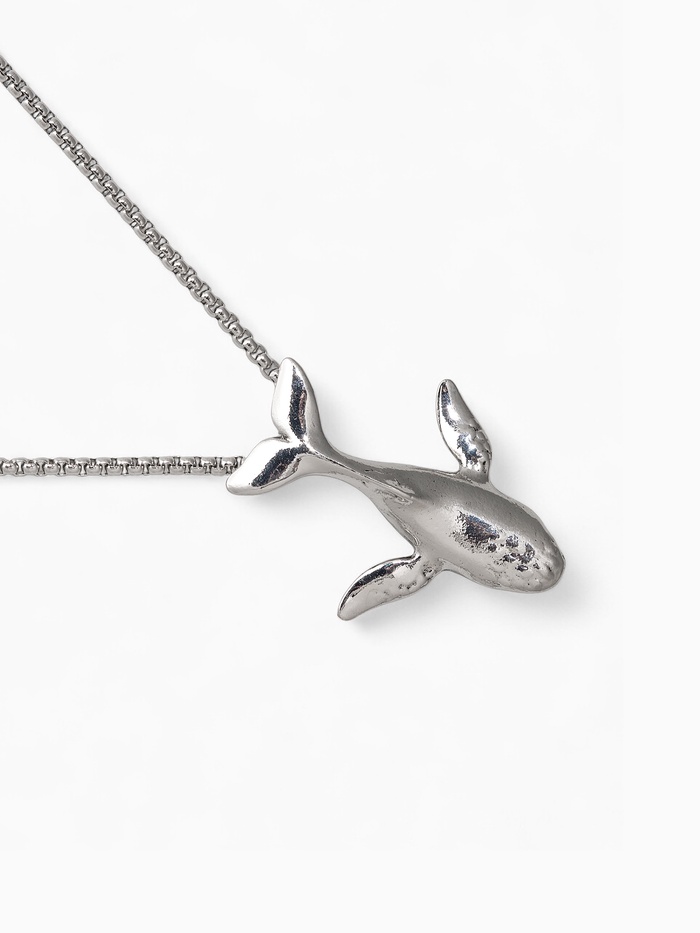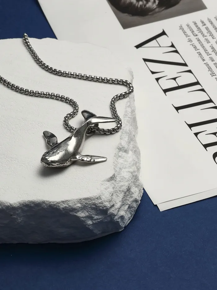 Этот кулон с изображением кита — настоящее воплощение морской тематики и элегантности. Изготовленный из металла с эффектом чернёного серебра, он привлекает внимание своей глубиной цвета и выразительной фактурой, создавая стильный и современный образ.