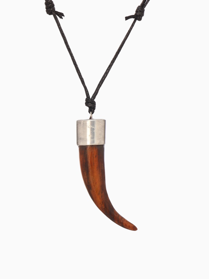 Мужской кулон в форме клыка выполнен из высококачественного дерева и демонстрирует мужественность и силу своего владельца. Натуральная фактура материала придает изделию особый шарм и выраженную энергетику. Предмет искусства прекрасно смотрится как дополнение к повседневной одежде или праздничному наряду.