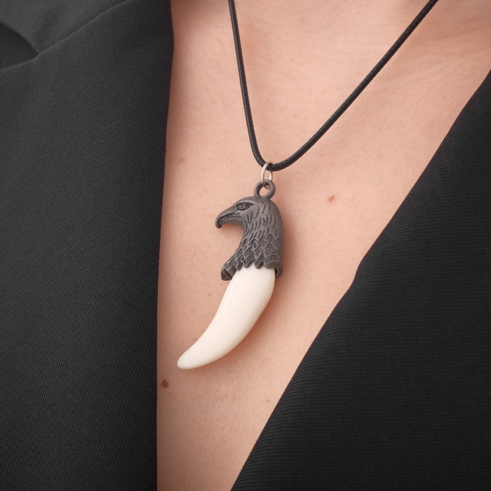 Кулон «Коготь орла», белый в серебре на чёрном шнурке, 45 см — Характеристики
