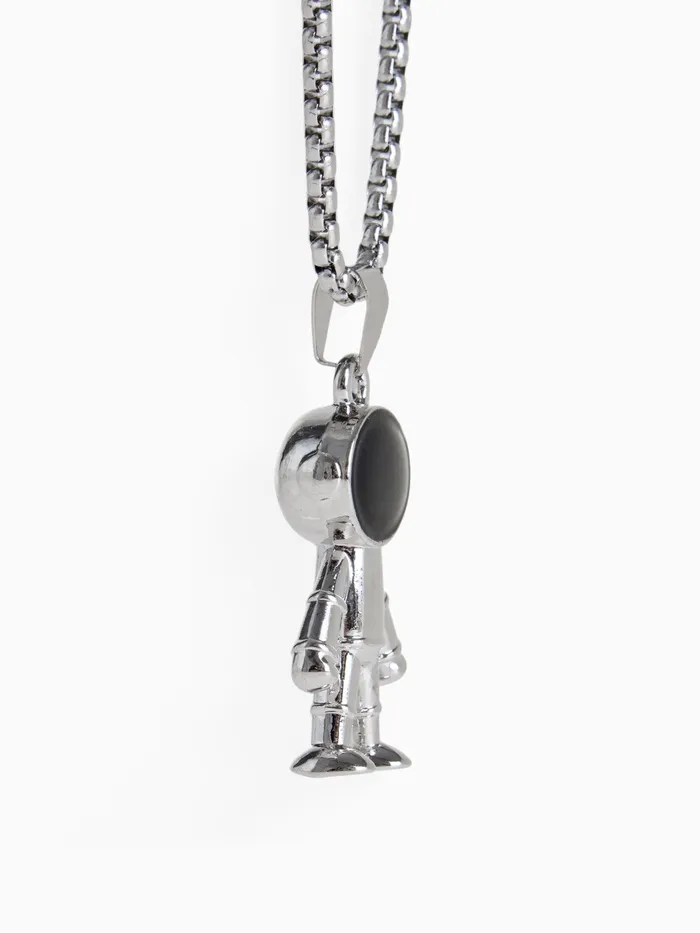 Кулон «Космонавт» человечек, чёрный в серебре, 70 см