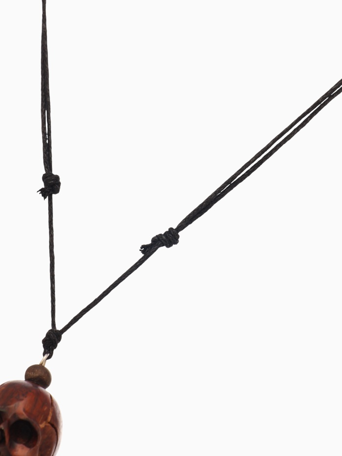 Кулон в готическом стиле с изображением кости изготовлен из благородного дерева и представлен в насыщенных оттенках коричневого цвета. Изделие эффектно выглядит благодаря оригинальному дизайну и оформлению из искусственной кожи чёрного цвета. Подходит как мужчинам, так и женщинам, желающим создать мистический и притягивающий взгляд образ.