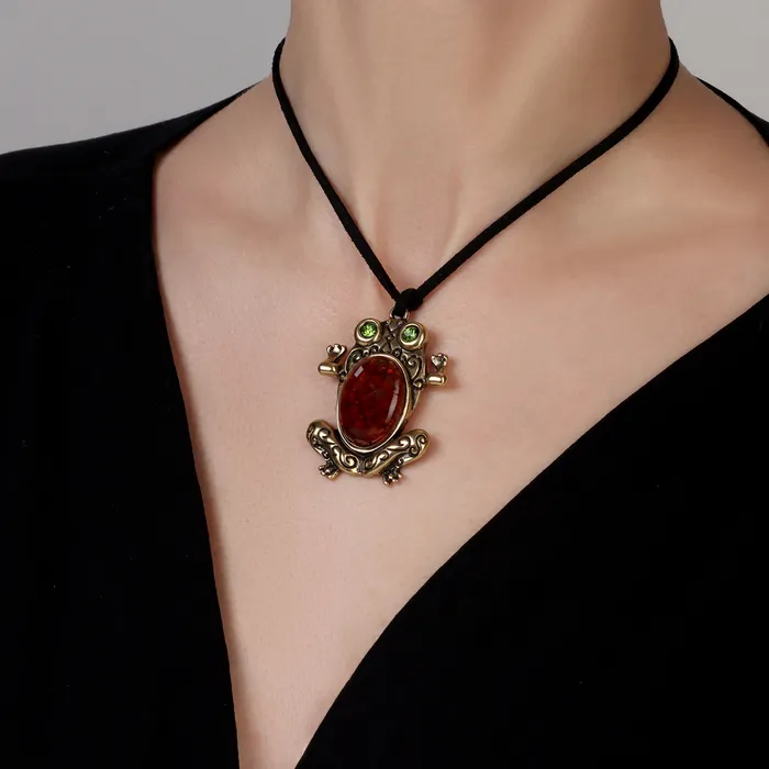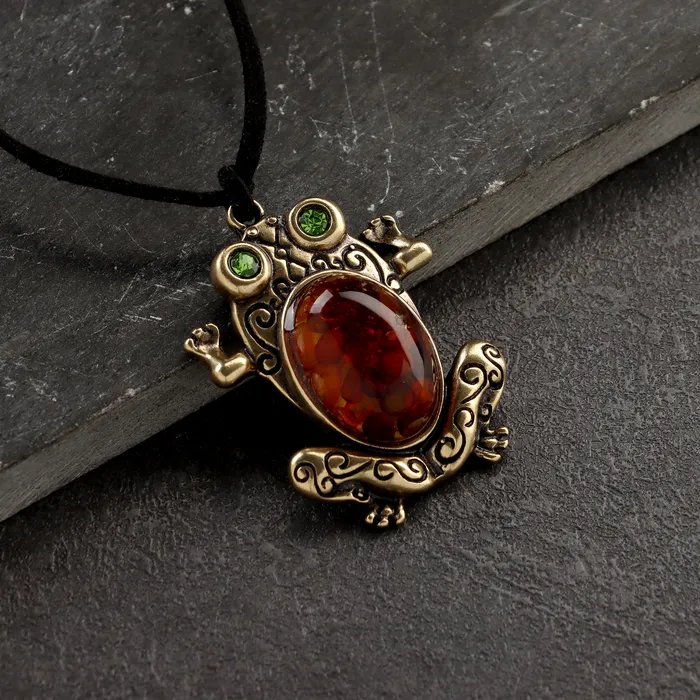 Кулон «Лягушка», латунь, янтарь — Характеристики