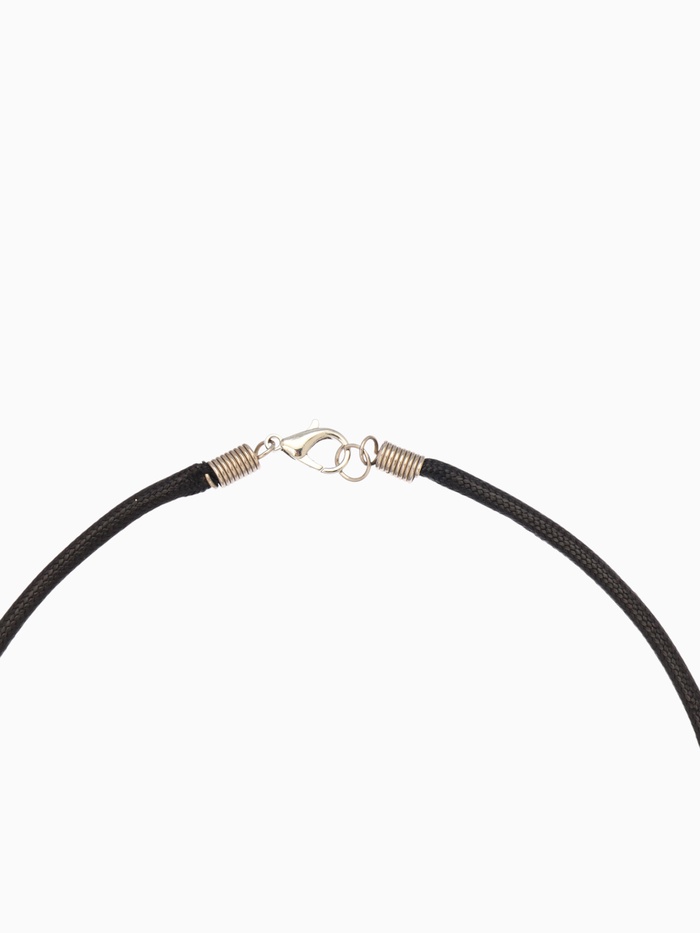 Текстильная основа, надежно удерживающая подвес, изготовлена из качественного материала, который сохраняет прочность и износостойкость, оставаясь удобной и комфортной в эксплуатации. Общая длина нити составляет 46 см, оптимально подходящую большинству типов шеи, позволяя выглядеть естественно и стильно.