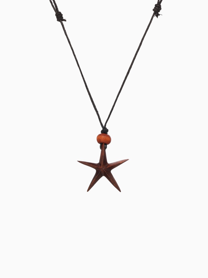 Женственный кулон в форме морской звезды станет вашим стильным аксессуаром и ярким штрихом образа. Изящное изделие длиной 23 или 46 сантиметров изготовлено из натуральной древесины и дополнено искусственной кожей чёрного цвета. Природная красота дерева создаёт гармонию с морским мотивом подвески, подчёркивая вашу индивидуальность и элегантность.