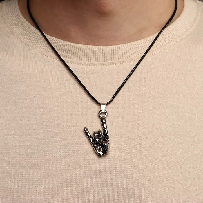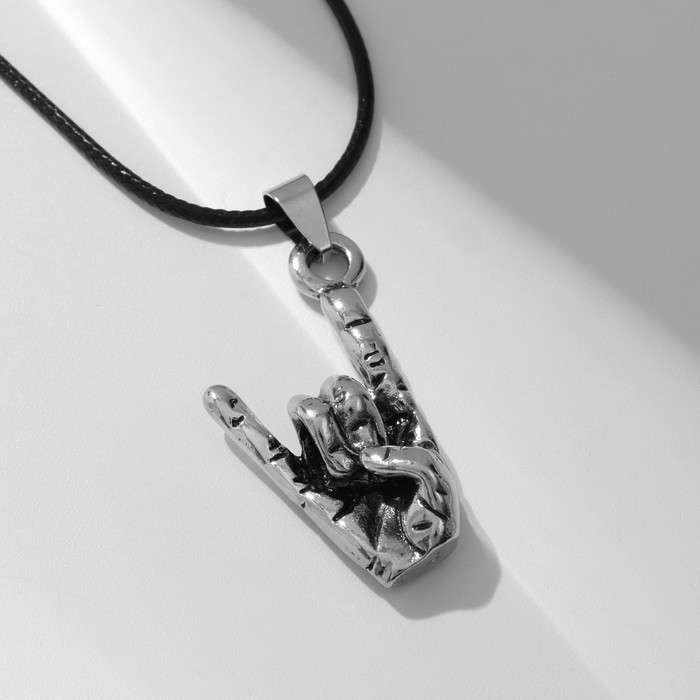 Кулон мужской «Рок» рука, цвет чернёное серебро на чёрном шнурке, 50 см — Характеристики