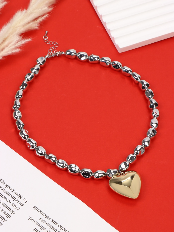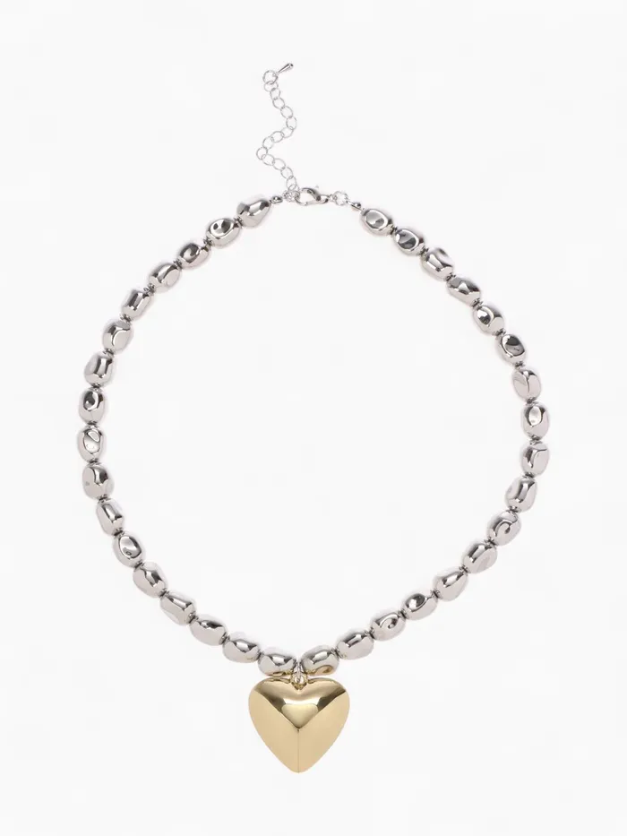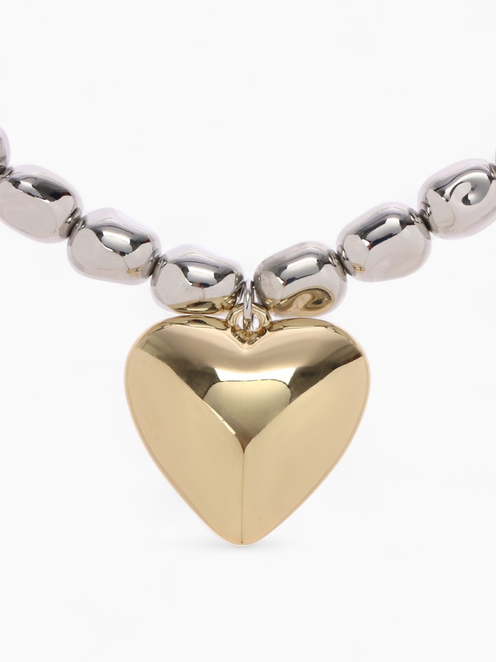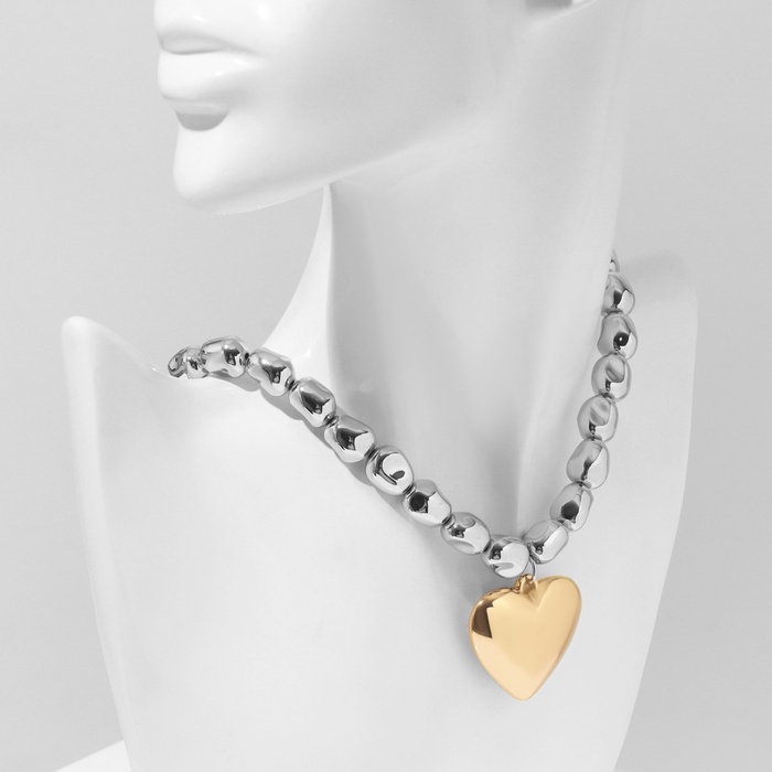 Кулон на декоративной основе «Сердце» объёмное, цвет серебро с золотом, 40 см — Характеристики