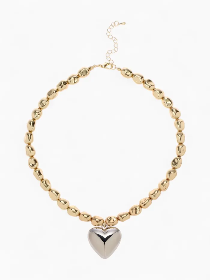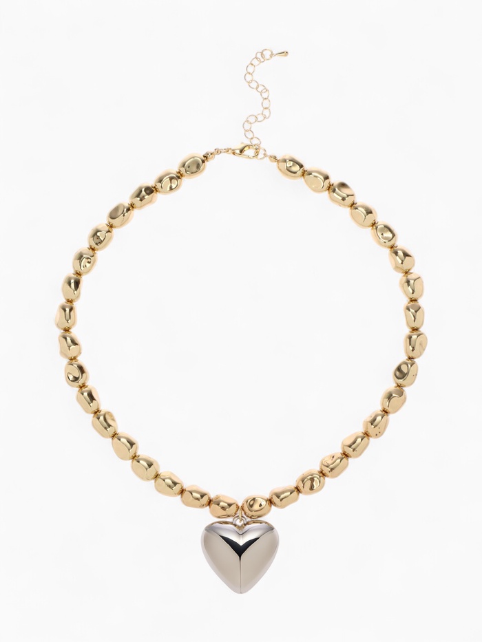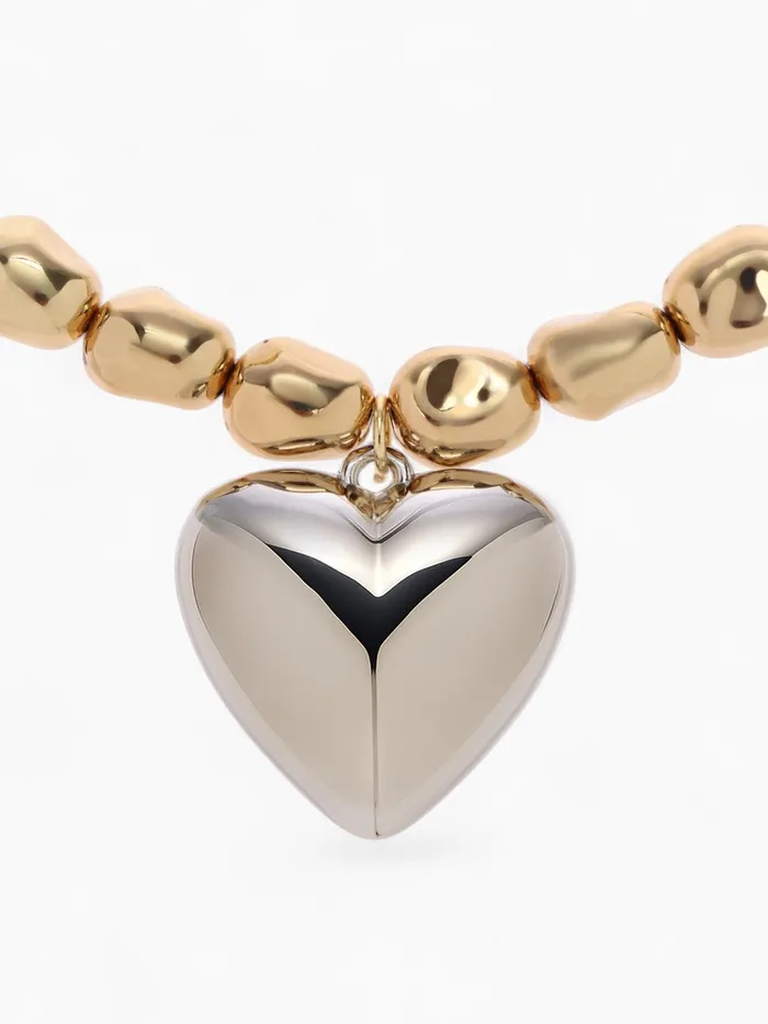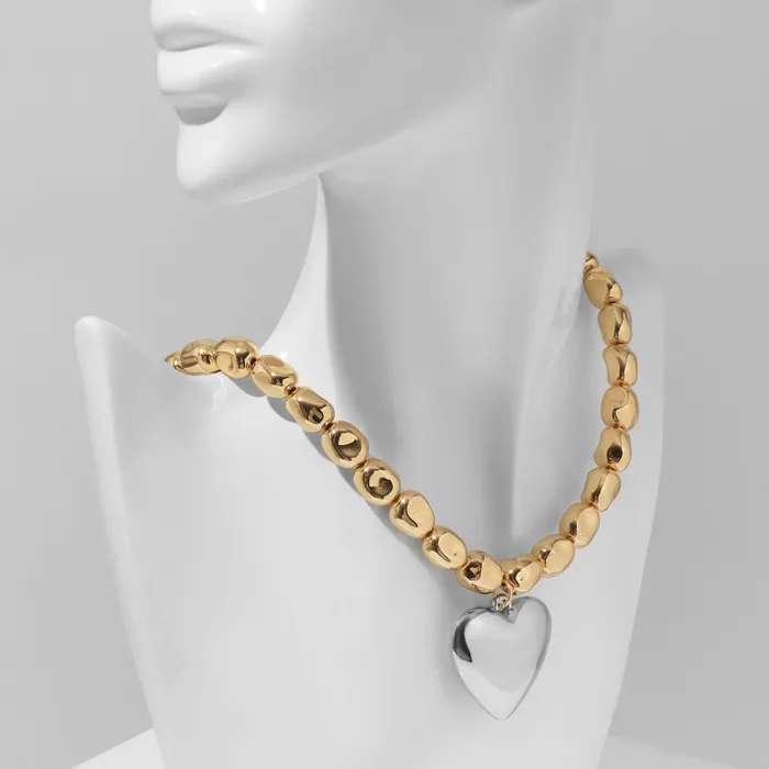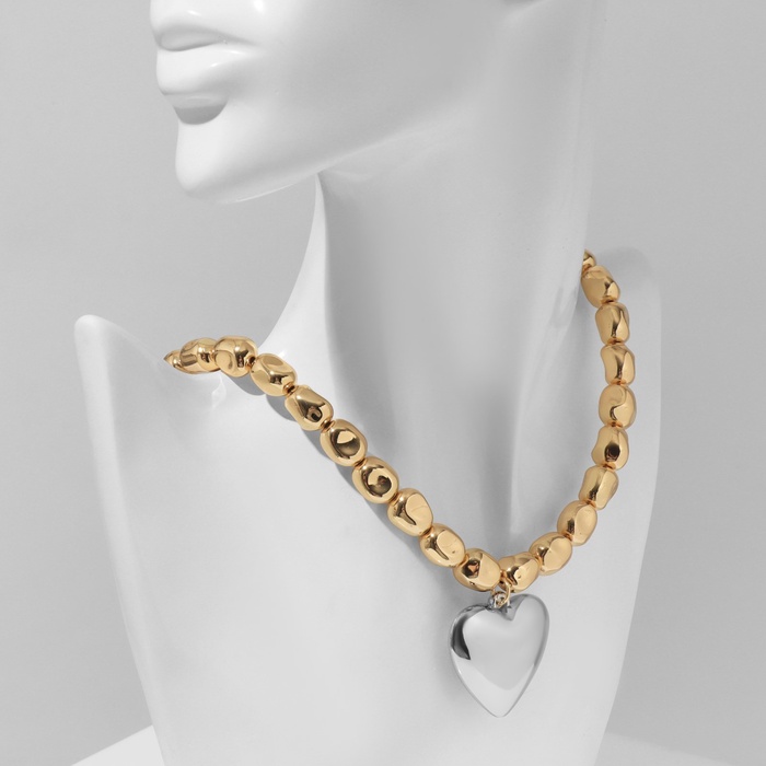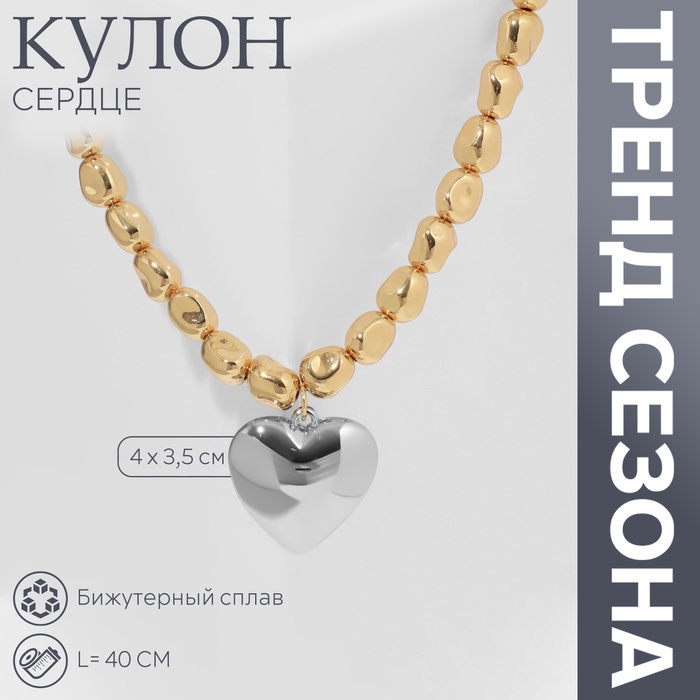 Кулон на декоративной основе «Сердце» объёмное, цвет золото с серебром, 40 см — Характеристики