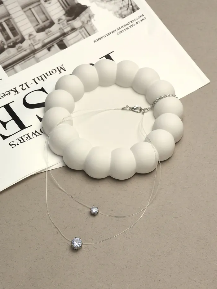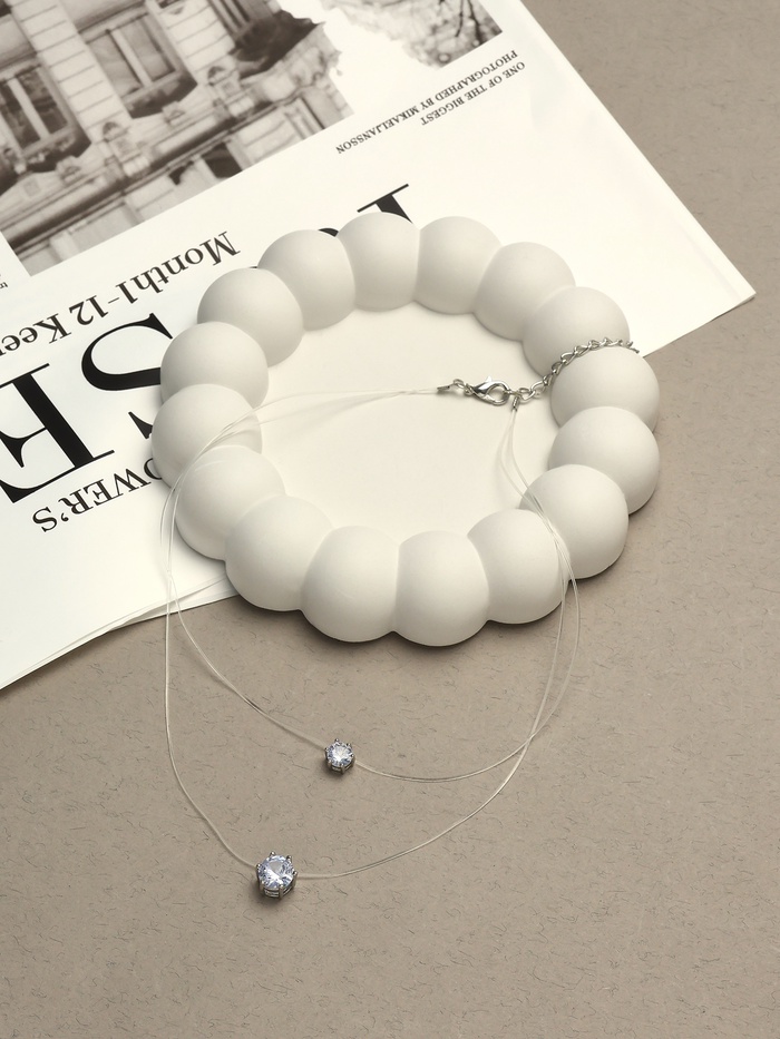 Кулон на леске «Двойной круг», белый в серебре, 40 см — Характеристики