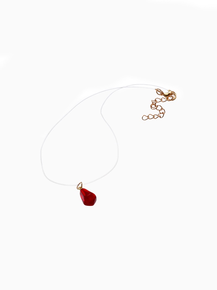Глубокий бордовый оттенок кулона на леске создаёт выразительный акцент, который легко впишется в любой образ, добавляя ему загадочности и утончённости. Длина 33 см с дополнительными 5 см позволяет регулировать посадку, обеспечивая комфорт и универсальность ношения.