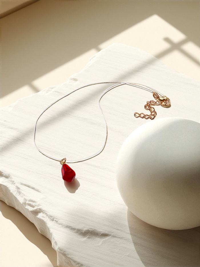 - Искусственный камень полистоун: насыщенный цвет и гладкая поверхность придают кулону эффект натурального граната.