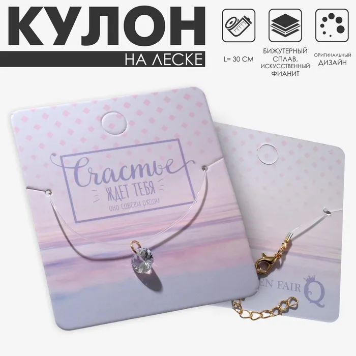 Кулон «На леске» кристаллик, цвет белый в золоте, 30 см — Характеристики