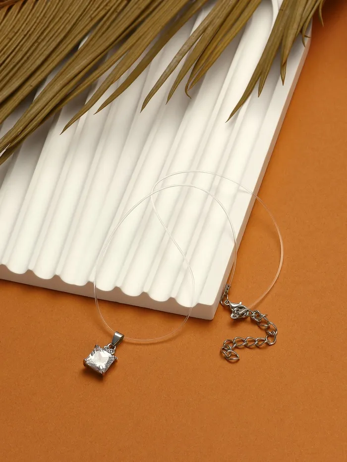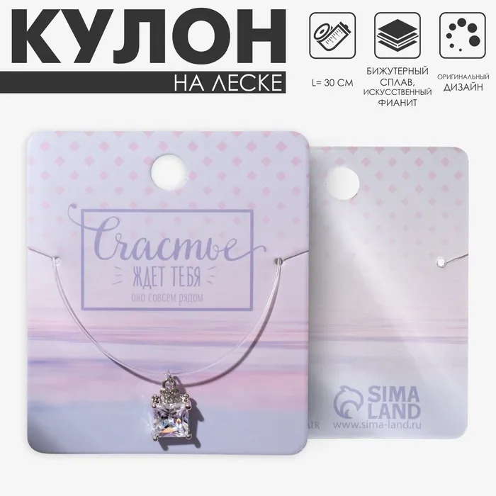 Кулон на леске «Счастье ждёт тебя», квадрат, белый в серебре, 30 см — Характеристики