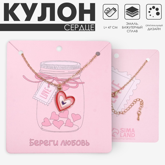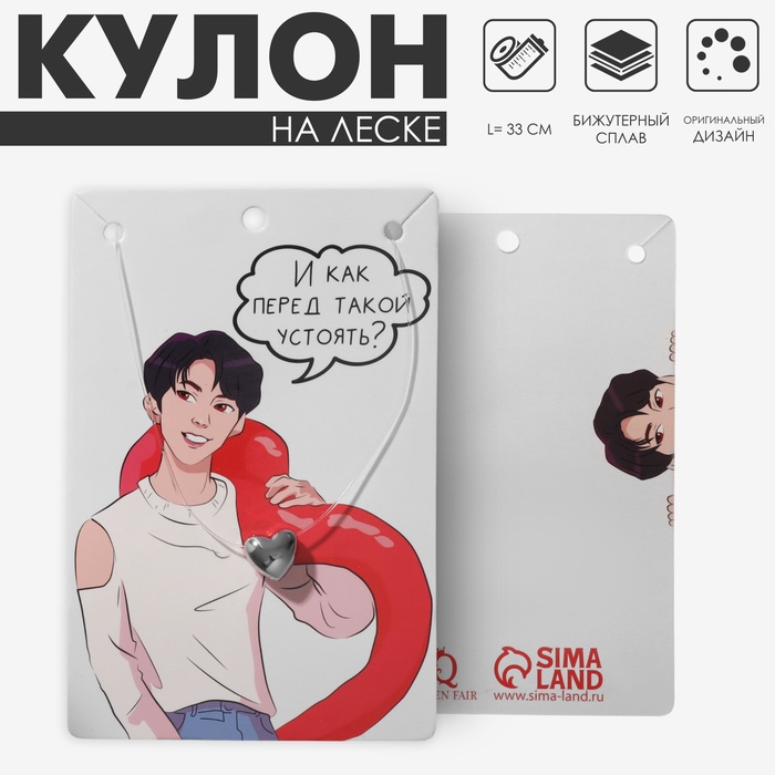 Кулон «На леске» сердце, цвет белый в серебре, 33 см — Характеристики