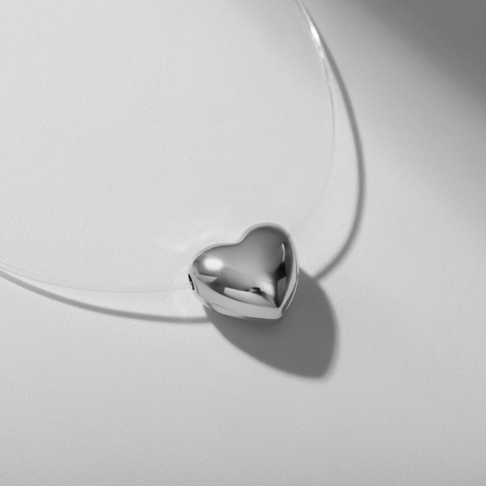 Кулон «На леске» сердце, цвет белый в серебре, 33 см