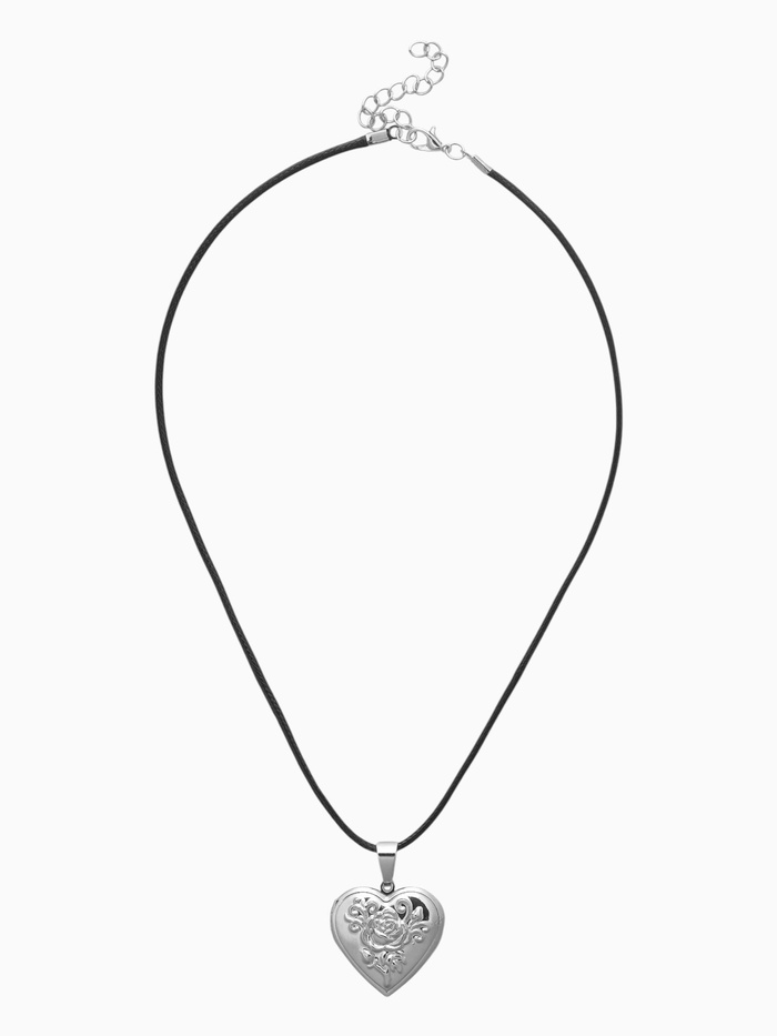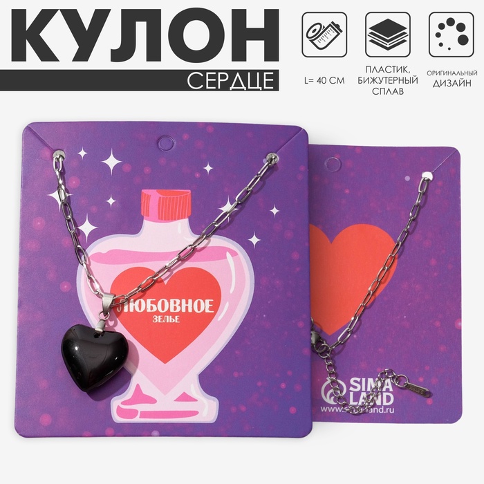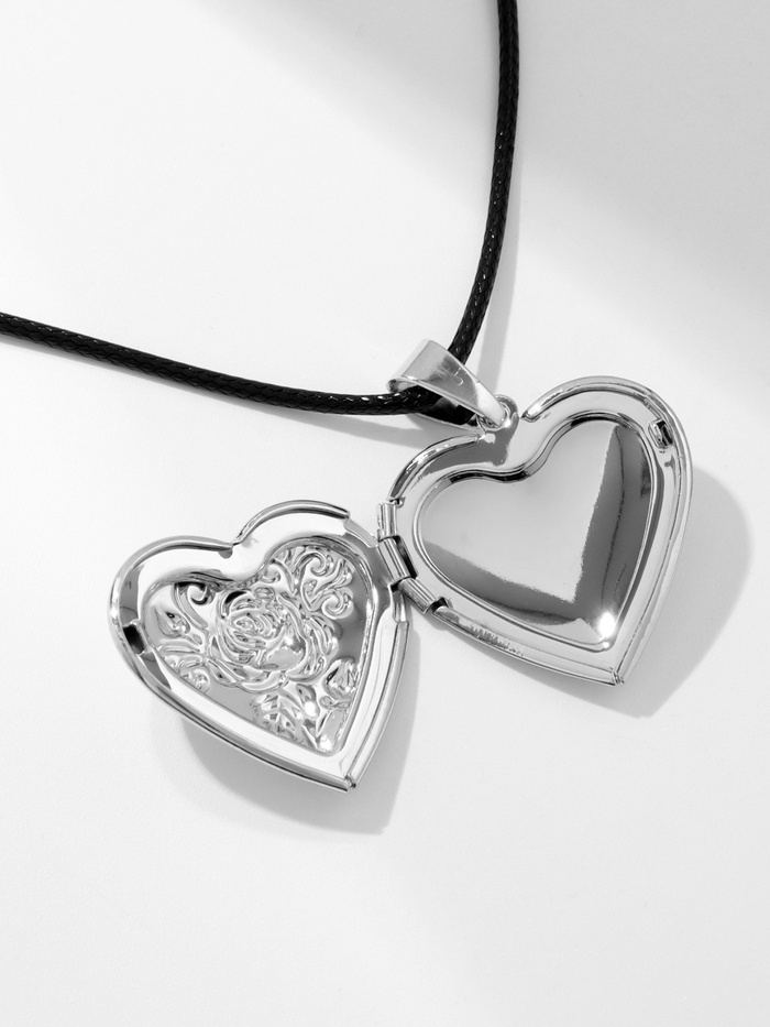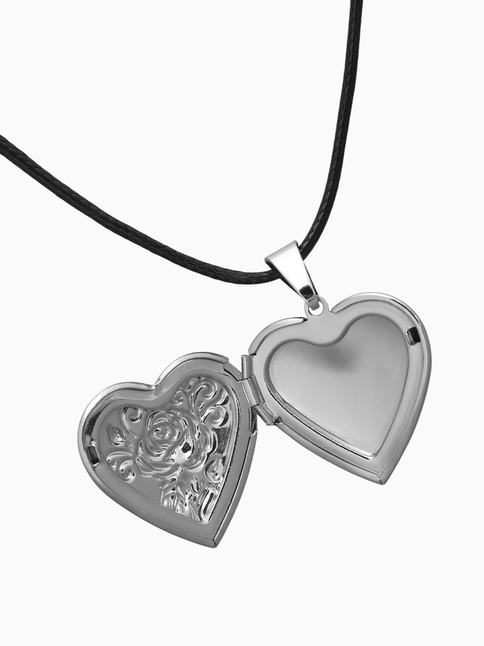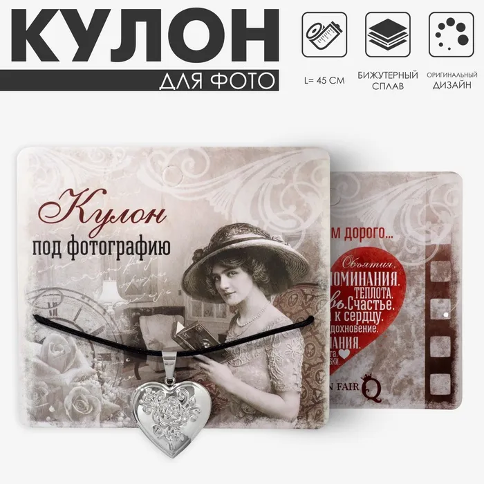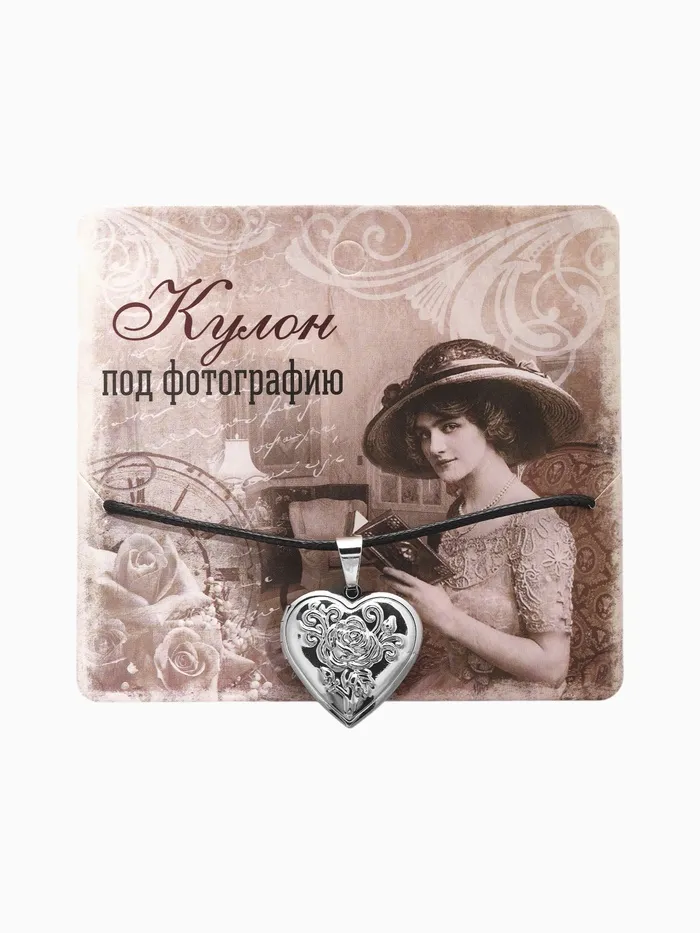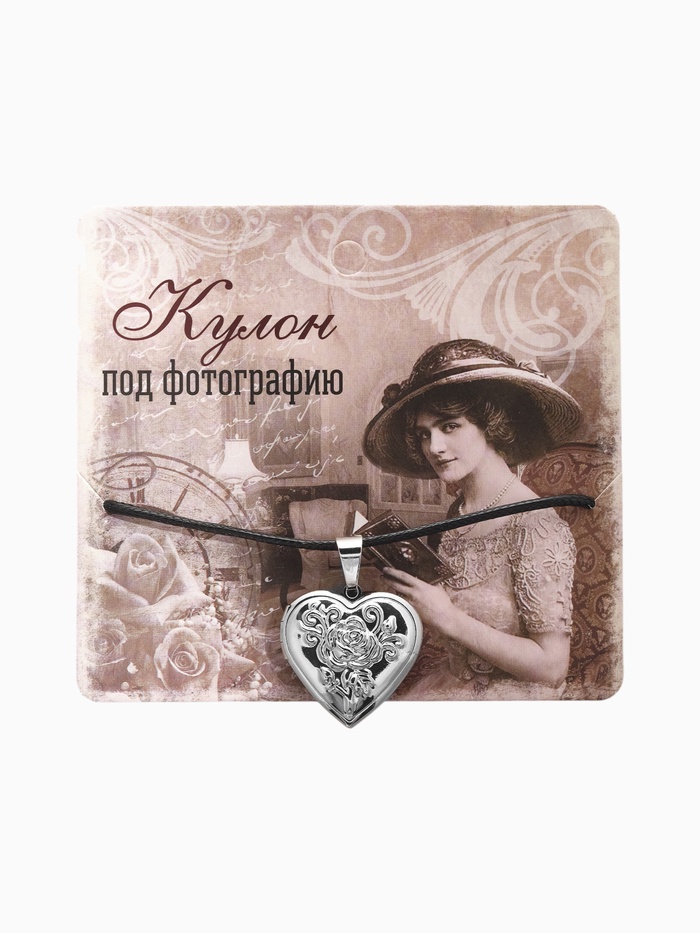 Кулон на шнурке «Для фото» сердце с розой, цвет чернёное серебро на чёрном шнурке, 45 см — Характеристики