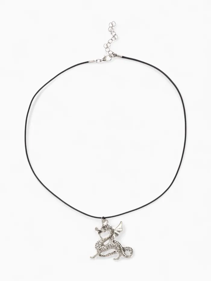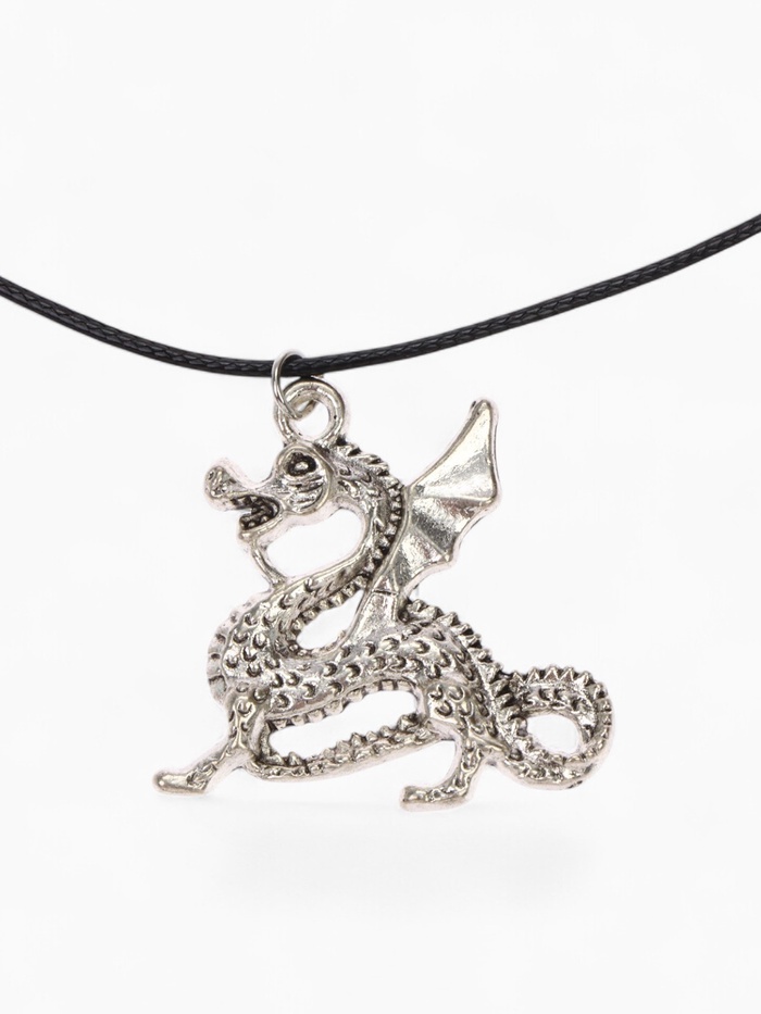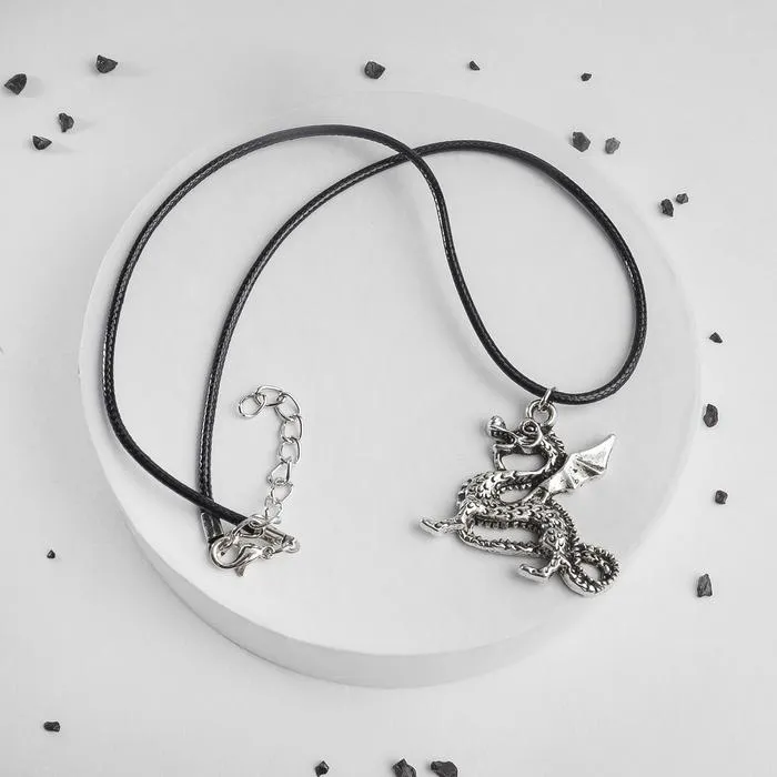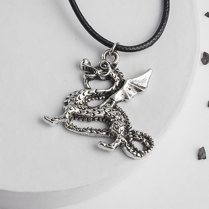 Кулон на шнурке «Дракон», цвет чернёное серебро на чёрном шнурке, 42 см — Характеристики