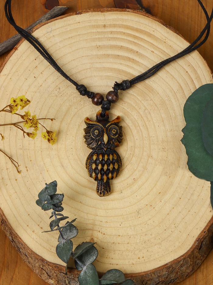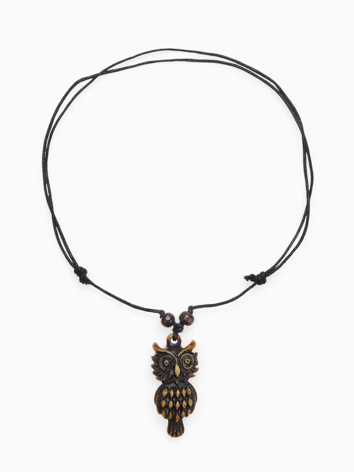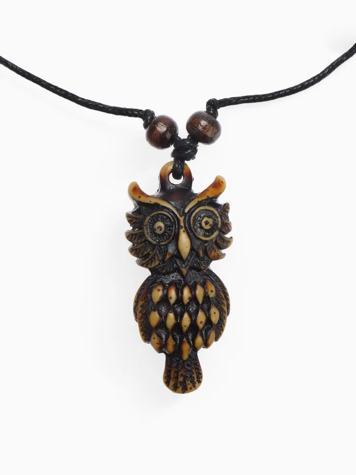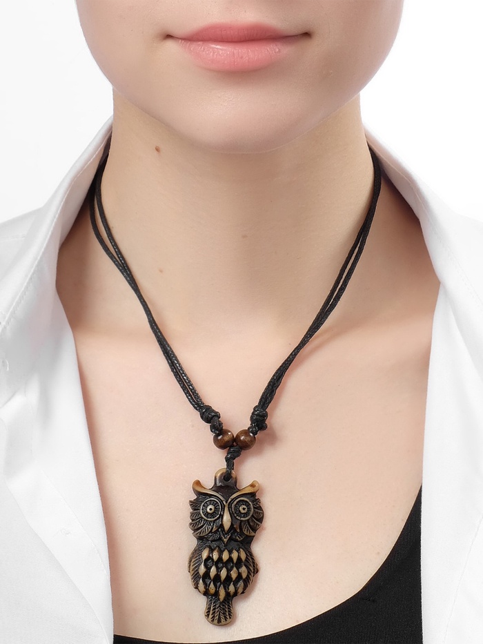 Кулон на шнурке «Филин», коричнево-чёрный на чёрном шнурке, 80 см — Характеристики