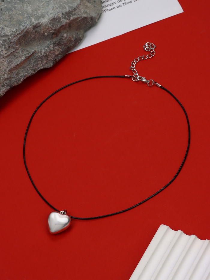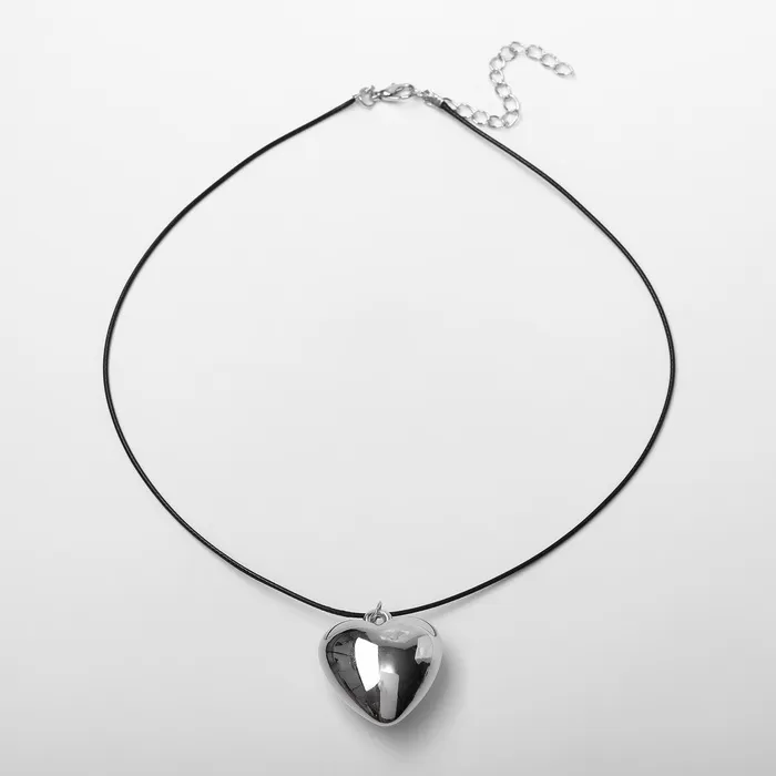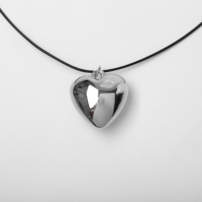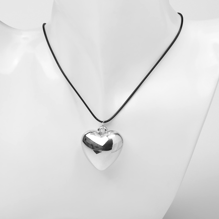 Кулон на шнурке «Сердце» объёмное, цвет серебро с чёрным, 30+5 см — Характеристики