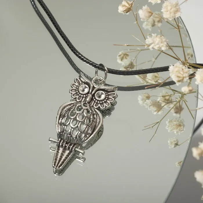 Кулон на шнурке «Сова», цвет чернёное серебро на чёрном шнурке, 42 см — Характеристики